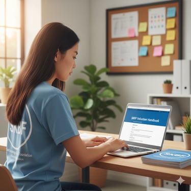 While SKBF is known for its mental health and social services, this image documents the expansion of our volunteer mandate to include humanitarian aid. The volunteers are pictured wearing their signature blue shirts, which have come to symbolize safety and reliability in this region. The image shows them working tirelessly under the hot sun, proving that the spirit of volunteerism is universal. Whether caring for a stray dog or scooping rice for a hungry child, the image conveys that an SKBF volunteer’s duty is to alleviate suffering wherever they find it."