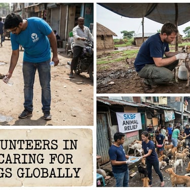 Community Engagement: Volunteers are seen here engaging in direct aid, establishing trust between local communities and animal welfare workers.